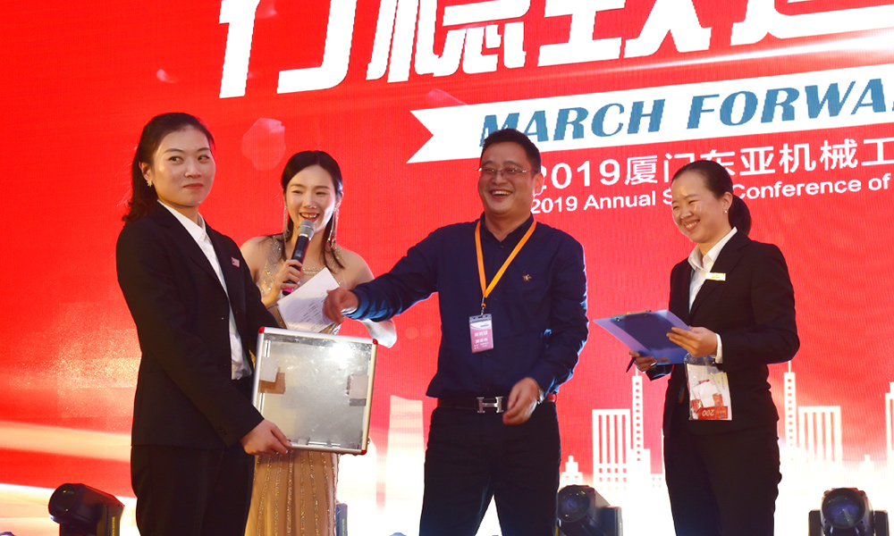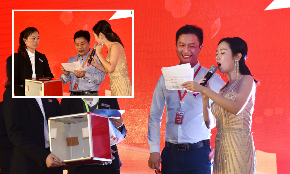 董事長(zhǎng)攜夫人為優(yōu)秀的經(jīng)銷(xiāo)商頒獎(jiǎng)