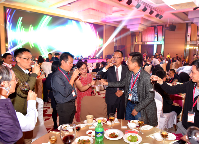 晚宴盛典在玉液滿(mǎn)樽的碰杯叮當(dāng)聲
